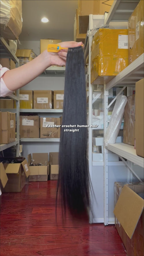 Orientfashion Straight Crochet Hair Natural Black Machine Made Feather Human Hair Extension