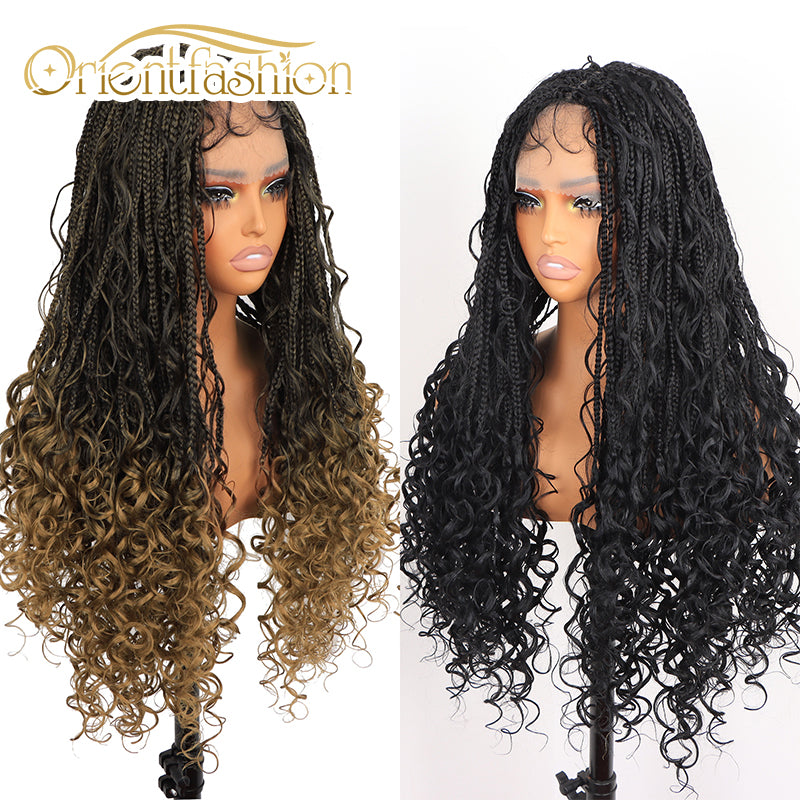 Orientfashion Bohemian Synthetic Full Lace Front Crochet Wigs Knotless Box Braided Wigs with Baby Hair for Black Women